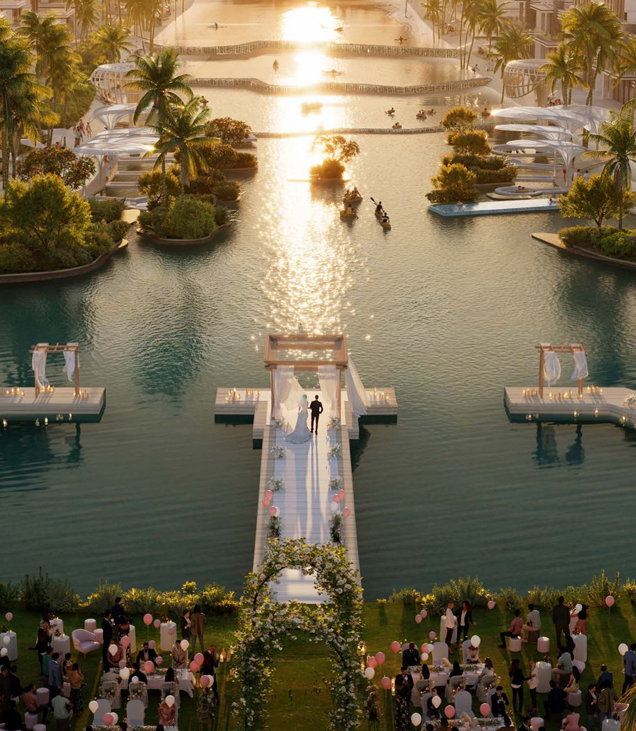 شواطئ خاصة، قبة مائية، أنهار استوائية، رياضة وترفيه — جاذبة للمالكين والمستأجرين.